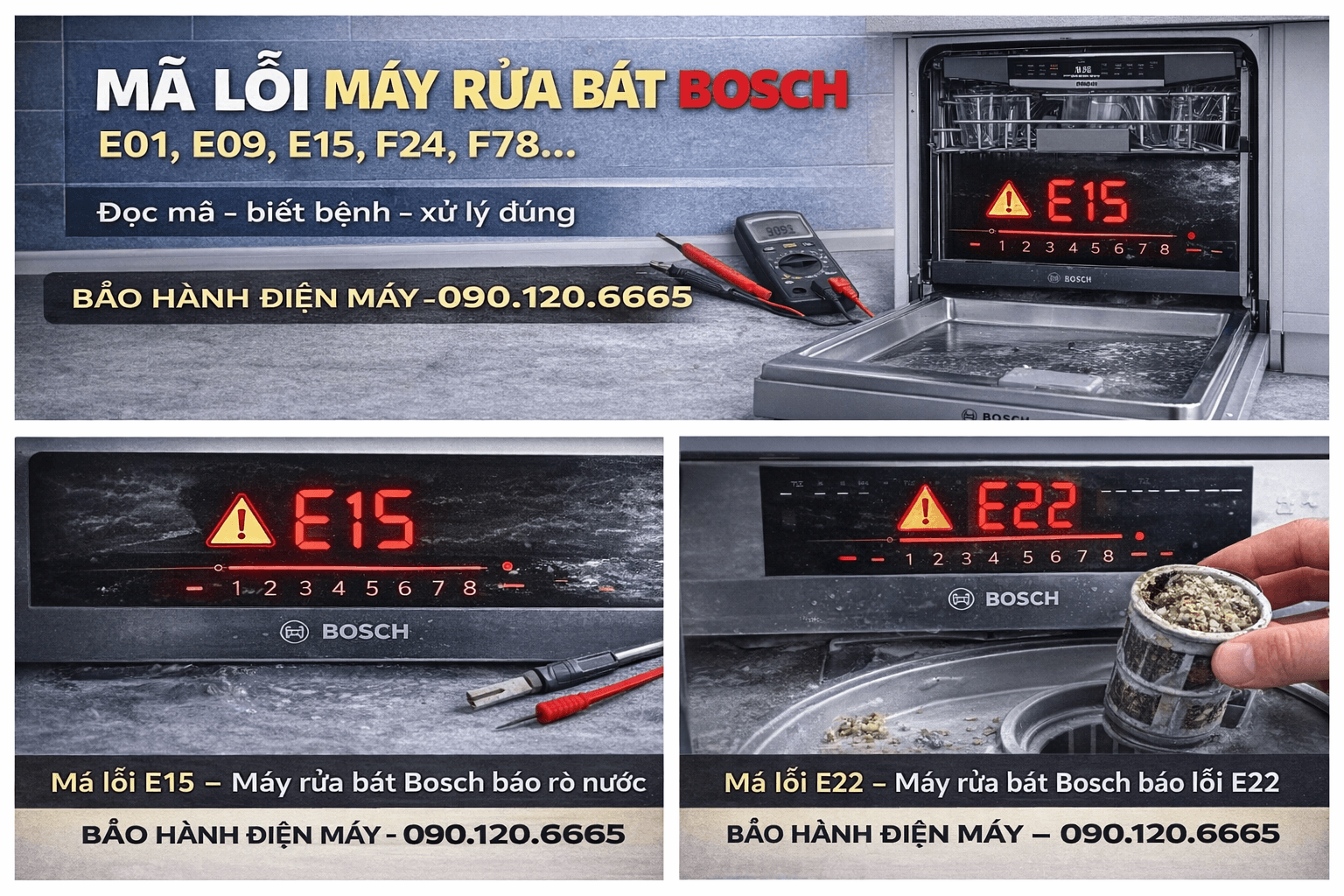 Bảng Mã Lỗi Máy Rửa Bát Bosch & Cách Xử Lý Chuẩn Thợ