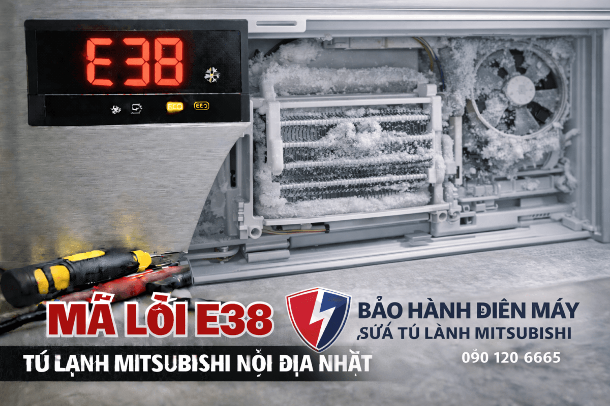 Dịch vụ Sửa tủ lạnh Mitsubishi nội địa Nhật của BẢO HÀNH ĐIỆN MÁY – 090.120.6665 chuyên xử lý triệt để lỗi E38 tại Hà Nội & TP.HCM, khôi phục hiệu suất làm lạnh chuẩn Nhật cho ngăn mát.
