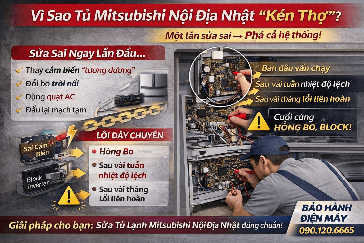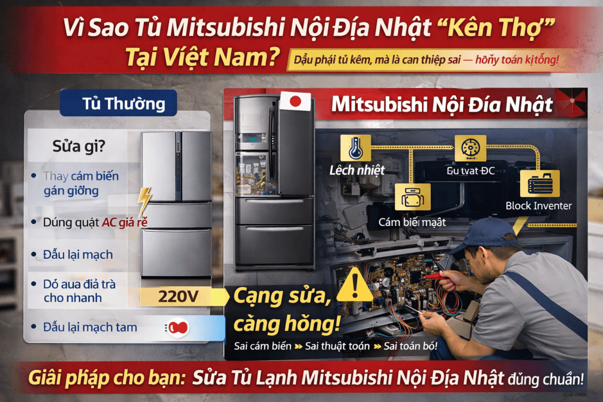 “Tủ Mitsubishi nội địa rất bền – nhưng đã hỏng thì phải gặp đúng thợ.”